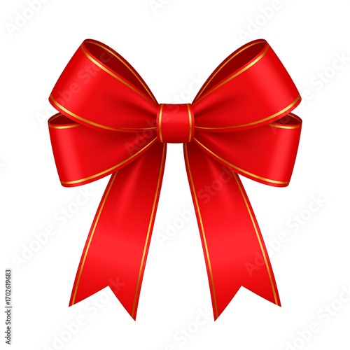 © amanah, Fototapeta premium Red ribbon bow on white background