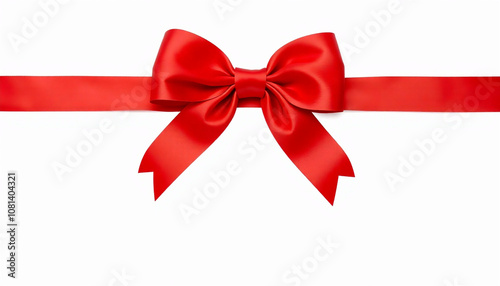 Fototapeta premium red ribbon bow, Red Satin Ribbon Bow on White Background: Minimalistic...