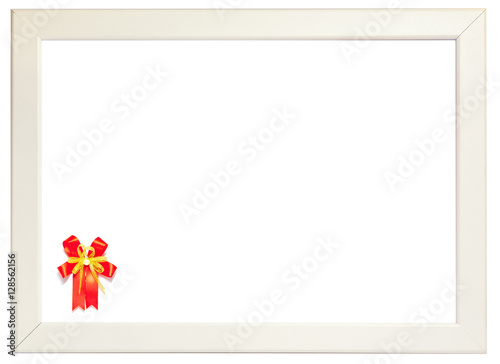 Obraz premium Red ribbon decorated on left corner of white frame, season greet