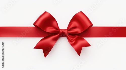 Fototapeta premium Red ribbon with a bow on a clean white background. Perfect for gift wrapping or decorating.