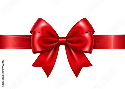 Fototapeta premium Red ribbon with bow isolated on white background PNG,AI GENERATED