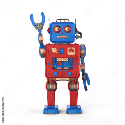 © phonlamaiphoto, Fototapeta premium Red robot tin toy hand up