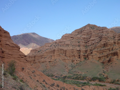 Fototapeta premium red rock formations in Canyon Konorchek in Kyrgyzstan