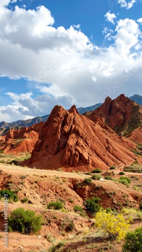 © Kardi, Fototapeta premium Red rock mountains under a partly cloudy sky