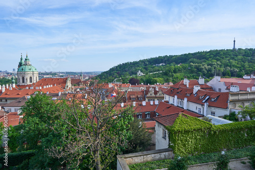 Fototapeta premium Red roof tops of the Lesser town in the Prague, capitol of Czech Republic. Pitoresque part of the big city with old buildings and beautiful historical architecture, popular between tourists from world