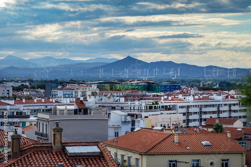 Fototapeta premium Red roofs of medieval French town Perpignan. Perpignan, Pyrenees-Orientales,...