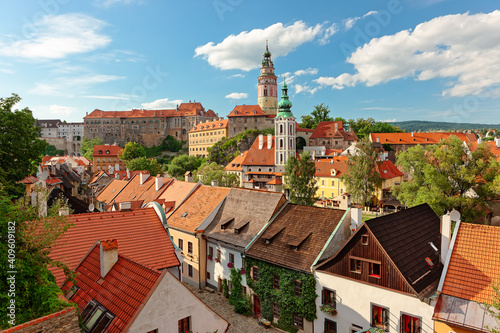 Fototapeta premium Red roofs of the medieval town of Cesky Krumlov