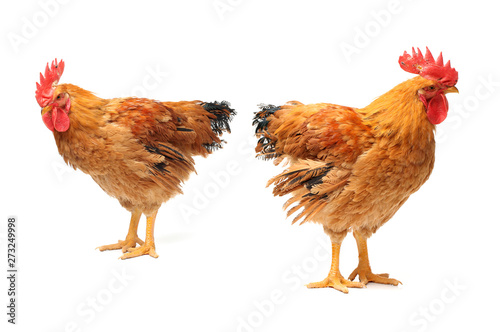 © zcy, Naklejka premium Red rooster on white background