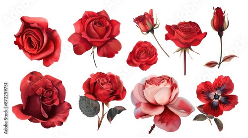 © florynstudio3, Fototapeta premium Red rose and eustoma flowers isolated on a transparent background. Generative AI