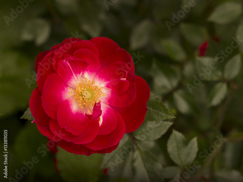 © perfidni1, Naklejka premium Red rose blooming in the garden
