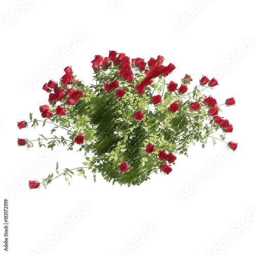 © Zahaoha, Fototapeta premium Red rose bush isolated transparent background sketch PNG with alpha channel