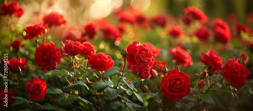 Fototapeta premium Red Rose Garden: A Stunning Display of the Enchanting Red Rose Blossoms in a Vibrant Garden