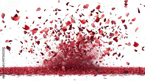 Fototapeta premium Red rose petals exploding outward against a white background