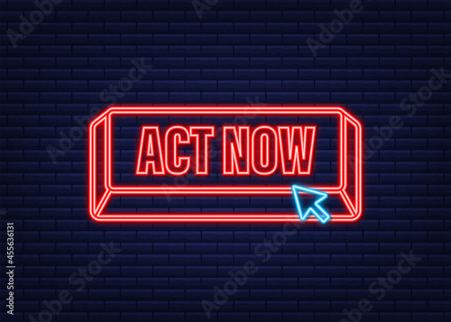 © DG-Studio, Fototapeta premium Red round act now neon button on white background. Vector stock illustration.