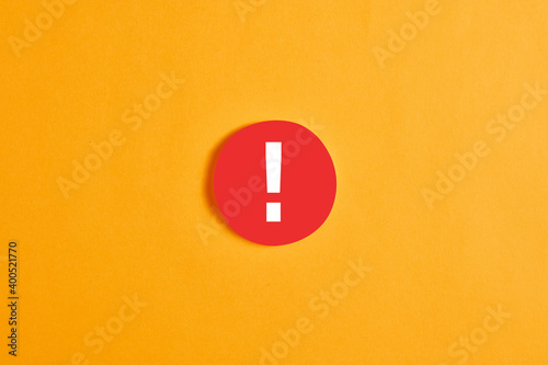© Cagkan, Obraz premium Red round circle with an exclamation mark button