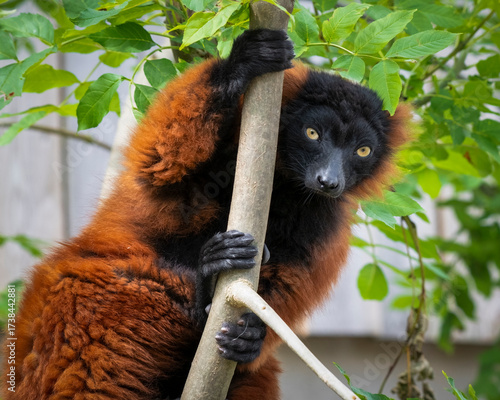 Obraz premium Red Ruffed Lemur Climbing a Tree