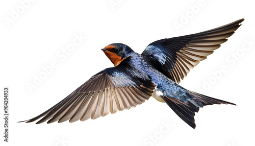 © fotoluigi868, Naklejka premium Red-Rumped Swallow in Flight- Red-rumped swallow in flight, Cecropis daurica, isolated on w_1(234)