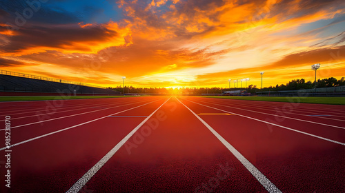 © Siasart Stock, Fototapeta premium Red Running Track Sunset Photo