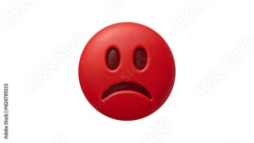 © Borasca, Obraz premium Red sad face emoji isolated on the transparent background, expression of disappointment and negative emotion, minimalist depressed mood icon