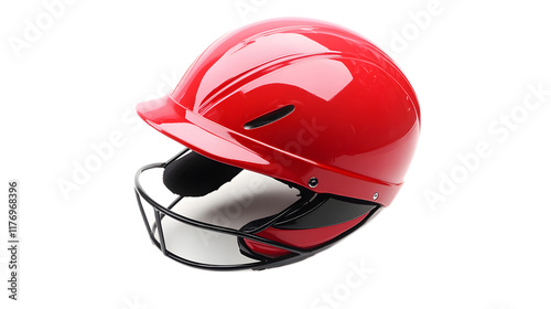 © Benjarin, Fototapeta premium Red Safety Helmet for Sports Use with Glossy Finish and Visor