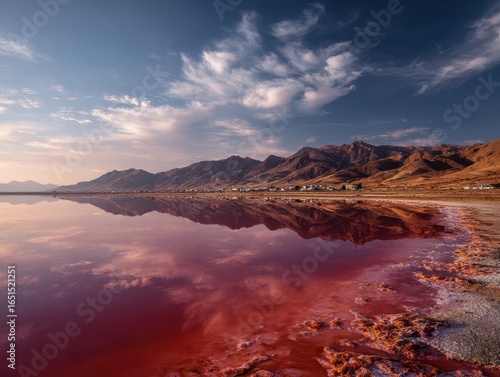 Fototapeta premium Red Salt Lake: A Crimson expanse of Natural Beauty