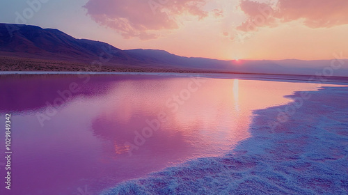 © 天宝 开, Fototapeta premium Red salt lake mountain scenery