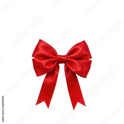 Fototapeta premium Red Satin Bow with Elegant Tails for Gift Wrapping and Decorations