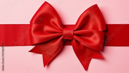© Lena, Naklejka premium Red satin gift bow on pink background.