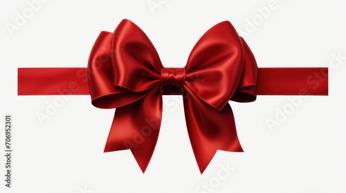 Fototapeta premium Red satin gift bow on white background. Festive decoration and gift wrapping.
