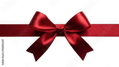 © Aklima, Fototapeta premium Red satin ribbon and bow isolated on transparent background