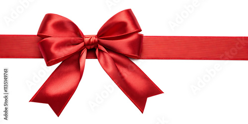 Fototapeta premium Red satin ribbon bow, elegant gift wrap, festive decoration isolated on...