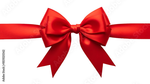 Fototapeta premium Red satin ribbon bow isolated on white background, a symbol of celebration and luxury