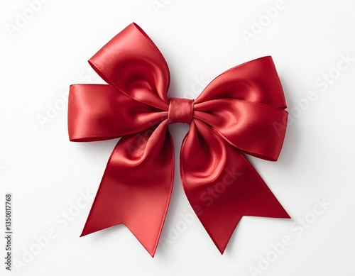 © ลลิดา ไชยศรีษะ, Fototapeta premium Red Satin Ribbon Bow on White Background