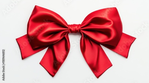 © Chandlerlikes, Fototapeta premium Red satin ribbon with bow isolated on white, top view