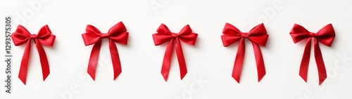 Fototapeta premium Red Satin Ribbons with Long Tails on White Background Design