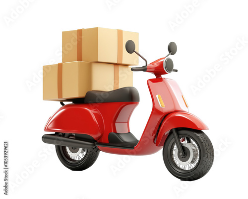 © Kainash, Obraz premium Red Scooter with Delivery Boxes