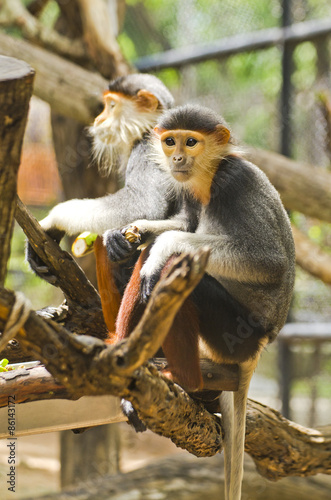 © Pond Thananat, Fototapeta premium Red shanked douc langur in the Zoo.
