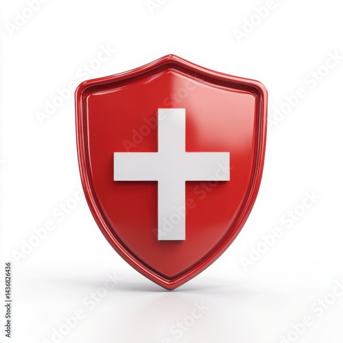 Fototapeta premium Red shield with a white cross, symbolizing health and safety.