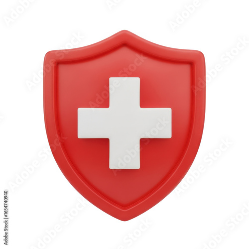 Obraz premium Red shield with white cross medical symbol isolated on transparent background