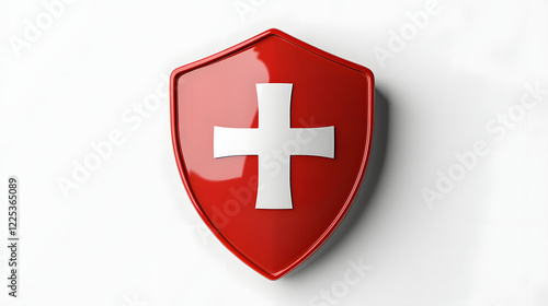 Obraz premium Red Shield With White Cross Symbol Of Protection