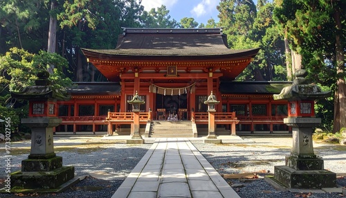 © Mili, Fototapeta premium Red Shinto shrine in a forest
