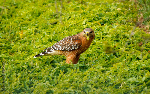 © Jen, Fototapeta premium red shoulder hawk hunting insects