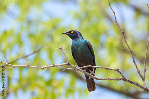 © Nadine, Fototapeta premium Red-shouldered glossy-starling (Lamprotornis nitens) sitting on a branch, Namibia, Africa