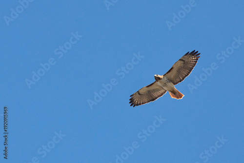 © Mark, Fototapeta premium Red shouldered hawk inflight high against deep blue sky.