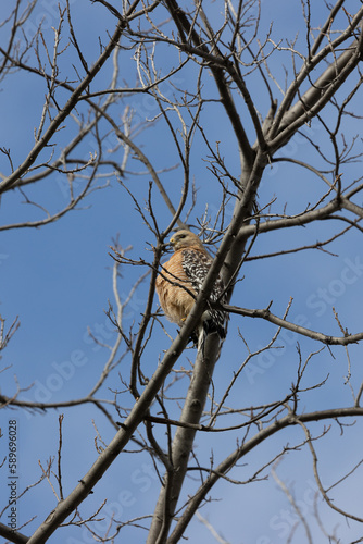 Obraz premium Red shouldered hawk perched in a tree