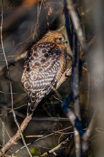 Fototapeta premium Red-Shouldered Hawk Perched on a Limb