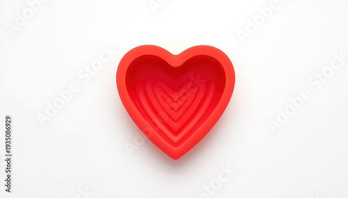 © VolumeThings, Fototapeta premium Red silicone heart mold on white background. Lollipop baking tool, flat view