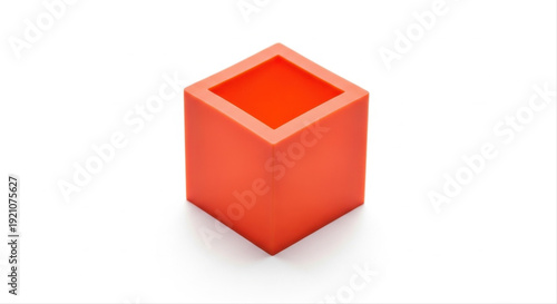 © Andrey, Fototapeta premium Red silicone tray with a cube shape isolated on a white background, showcasing minimalist design and bold color contrast