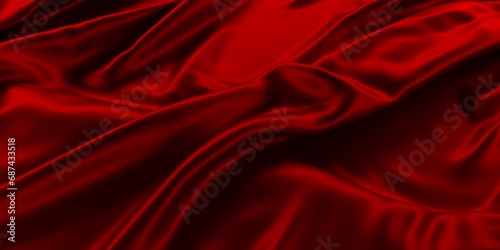 © VERSUSstudio, Obraz premium Red silk fabric background. Cloth waves