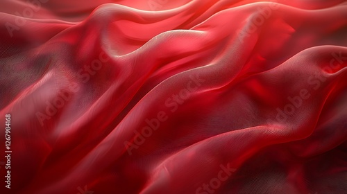 © budiyono, Fototapeta premium Red silk fabric drapes, studio shot, light background, texture design